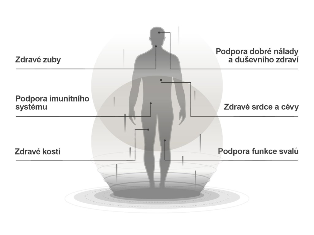 - Výrazne ovplyvňuje mineralizáciu kostí a zubov