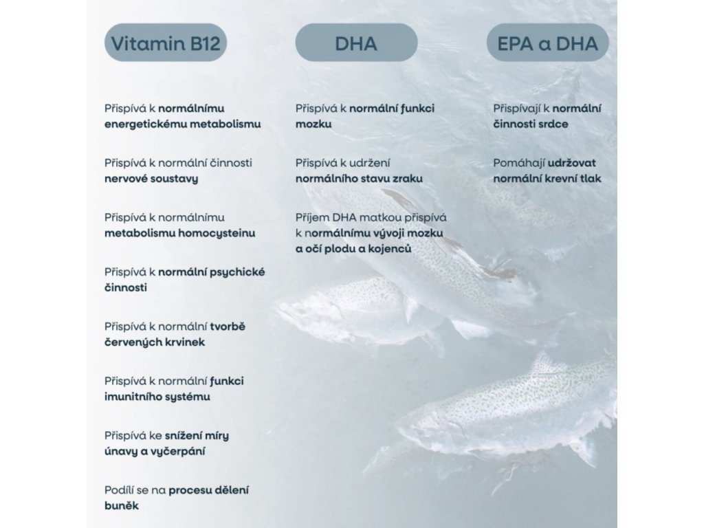 Omega 3 mastné kyseliny sú zdravé tuky, ktoré sú nevyhnutné pre správne fungovanie organizmu, ale naše telo si ich nedokáže samo vytvoriť. Musíme ich teda získavať z potravín alebo doplnkov stravy. Najdôležitejšie omega-3 mastné kyseliny sú DHA (dokosahexaenová kyselina) – skvelá pre mozog, pamäť a zrak a EPA (eikosapentaenová kyselina) – zameraná na srdce a prispieva k normálnemu krvnému tlaku.