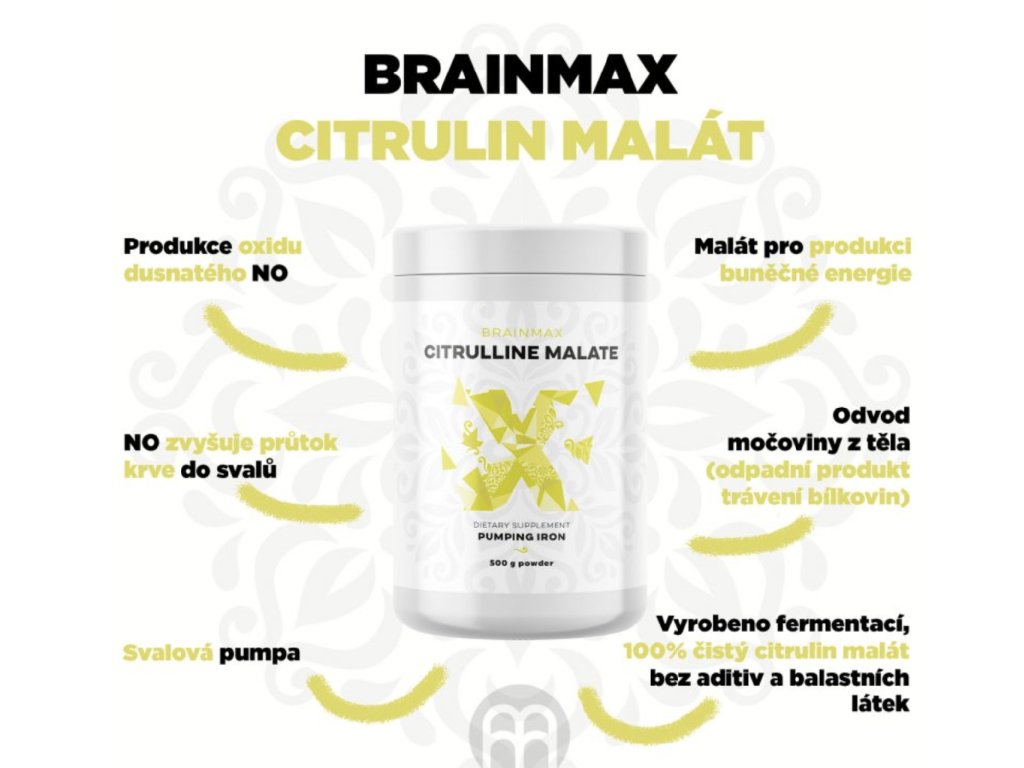 Citrulín malát je vhodný viac pre športový výkon a silu, pretože obsahuje aj kyselinu jablčnú, ktorá zvyšuje bunkovú energiu. Niektoré zdroje naznačujú, že sa rozpadá pomalšie ako bežný L-citrulín a vďaka tomu zvyšuje NO teda roztiahnutie ciev pumpu dlhšie. Na druhú stranu je v jednej dávke o jednu tretinu citrulínu menej na úkor malátu (kys. jablčnej), čo sa ale dá riešiť zvýšením dávky napr. na 8 až 9 g pre poriadnu pumpu.