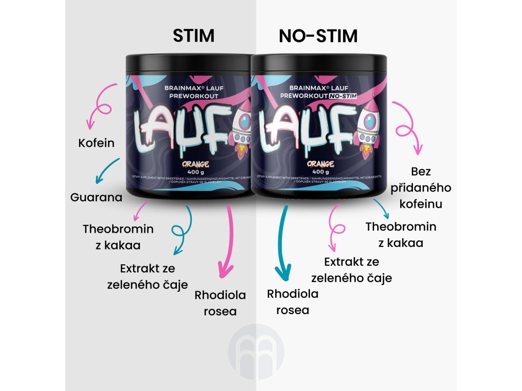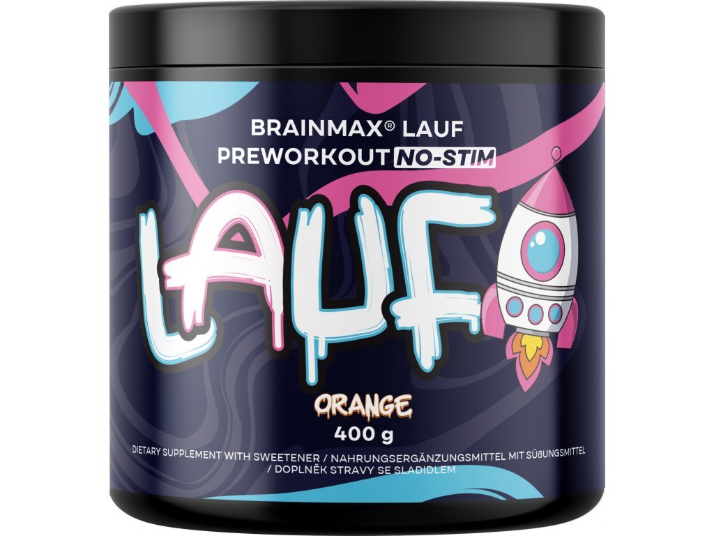 BrainMax Lauf Preworkout NO-STIM, Predtréningovka pre podporu výkonu bez kofeínu, červený pomaranč, 400 g
