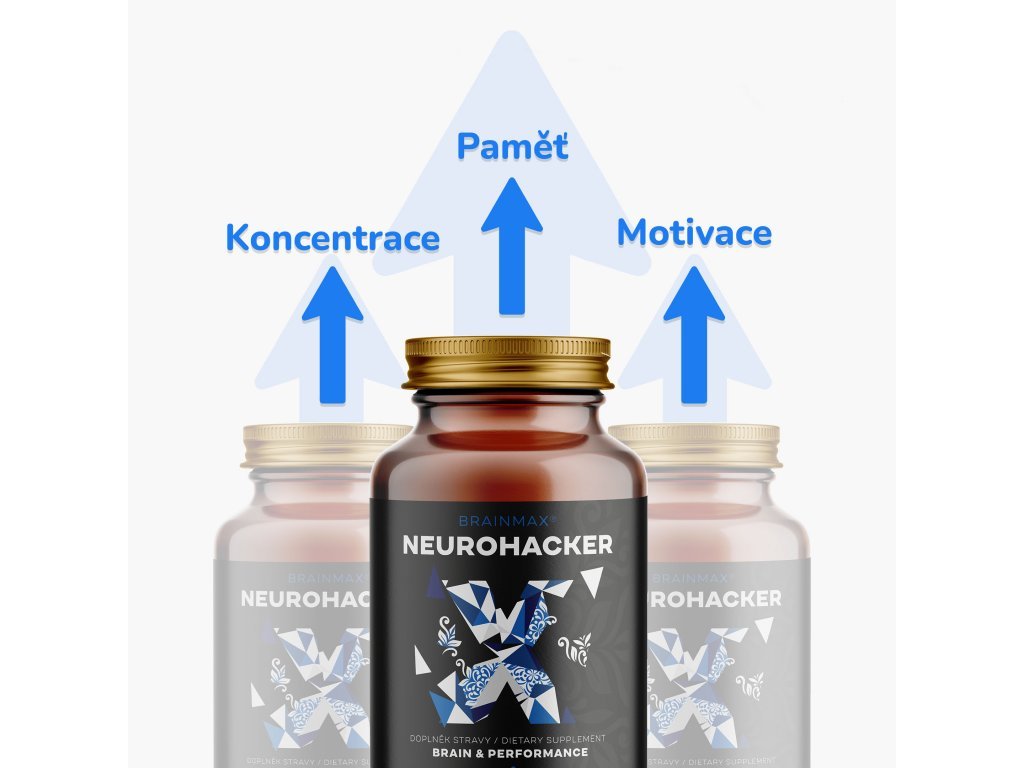 Dajte zbohom dňom, kedy ste fungovali na pol plynu. Vďaka látkam obsiahnutých v upgradovanom Neurohackeri budete naplno využívať potenciál a kapacitu vášho mozgu. Či už v zamestnaní alebo v škole, vždy s maximálnym nasadením, koncentráciou a dostatočnou motiváciou. Neurohacker je komplex 8 účinných látok , ktorý bol ušitý na mieru pre študentov, mentálne pracujúcich ľudí a všetkých, ktorí chcú posunúť funkcie mozgu na svoj vrchol.