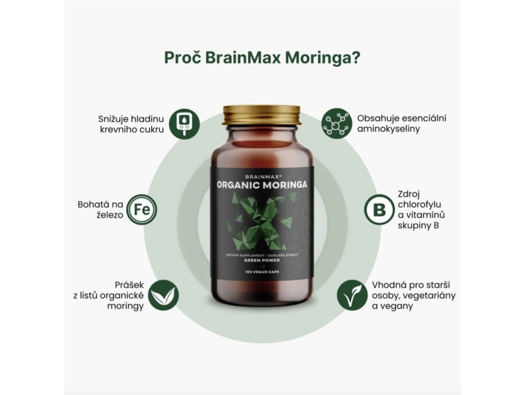 BrainMax Organic Moringa, 500 mg, 100 rastlinných kapsúl