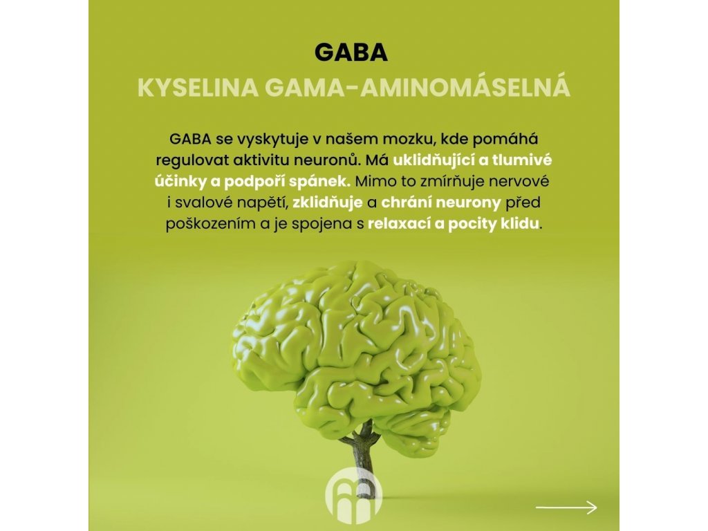 GABA – kyselina gama-aminomaslová . GABA sa vyskytuje v našom mozgu, kde pomáha regulovať aktivitu neurónov. Má upokojujúce a tlmivé účinky a podporí spánok , rovnako ako obsiahnutá šťava z Višne obyčajnej (Prunus Cerasus) , ktorá zefektívni zaspanie a následne podporí spánok.