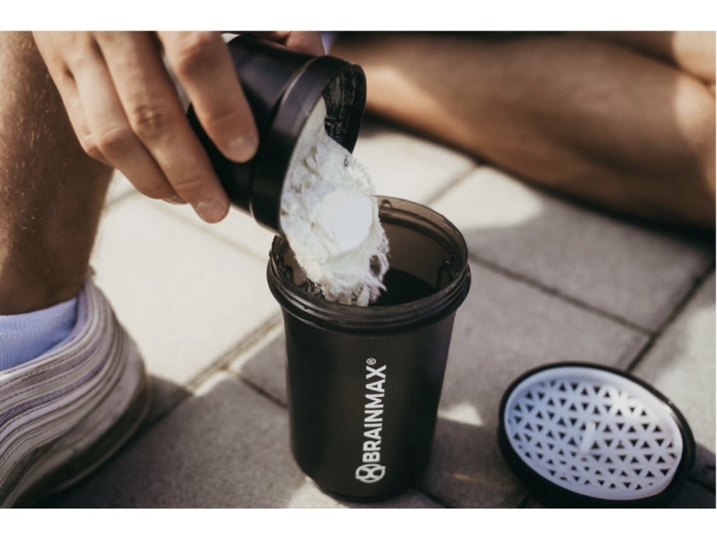 Elegantní černý design šejkru s BrainMax logem skvěle poslouží do fitka, protože je lehký a vždy připravený k rozmíchání proteinu, předtréninkovky nebo elektrolytů.