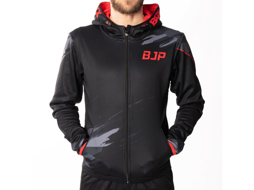 Ľahká športová mikina s kapucňou BJP má jednoduchý voľnejší strih a je vyrobená v kombinácii dvoch materiálov. Základ tvorí ľahký, príjemný, rýchloschnúci DryClim, vsadky pod pažami sú zo sieťovaného materiálu Mesh pre zvýšenie priedušnosti a pružnosti.