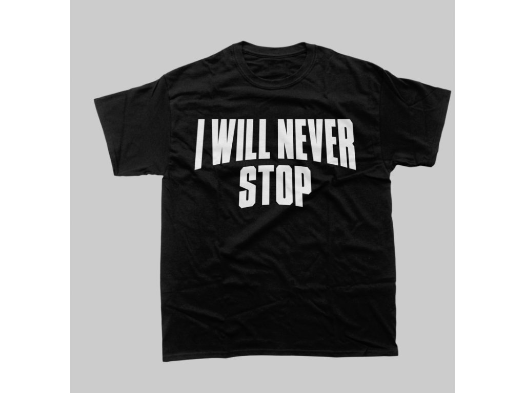 "I will never stop" bola hláška Jiřího Procházky k Joe Roganovi pri po zápasovom rozhovore na UFC 295. Teraz ponúkame tričko s touto hláškou v predaji!